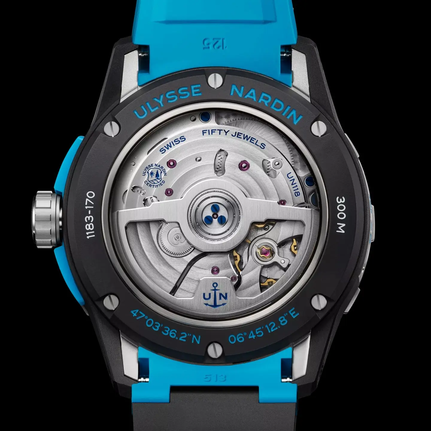 本日は、そんな季節にも映える鮮やかなブルーが印象的な時計、”ユリス・ナルダン”〘ダイバーネット アズール〙をご紹介いたします。