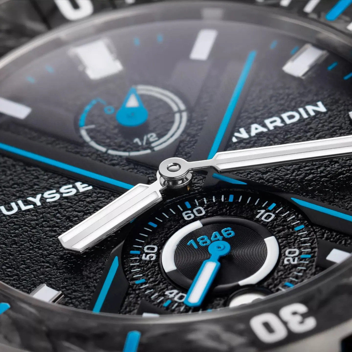 このモデルの魅力はデザインだけではありません、ケースやストラップには、海洋プラスチックを再利用した素材を採用。ユリス・ナルダンが大切にしている「海を守る」という理念を形にした、ブランドの新しい挑戦です。ユリス・ナルダンには、19世紀から海との関わりが深いブランド。かつては”マリンクロノメーター”で世界中の航海士に信頼されてきた歴史があります。その伝統を受け継ぎながら、現代では「海を守る時計」として進化を続けています。