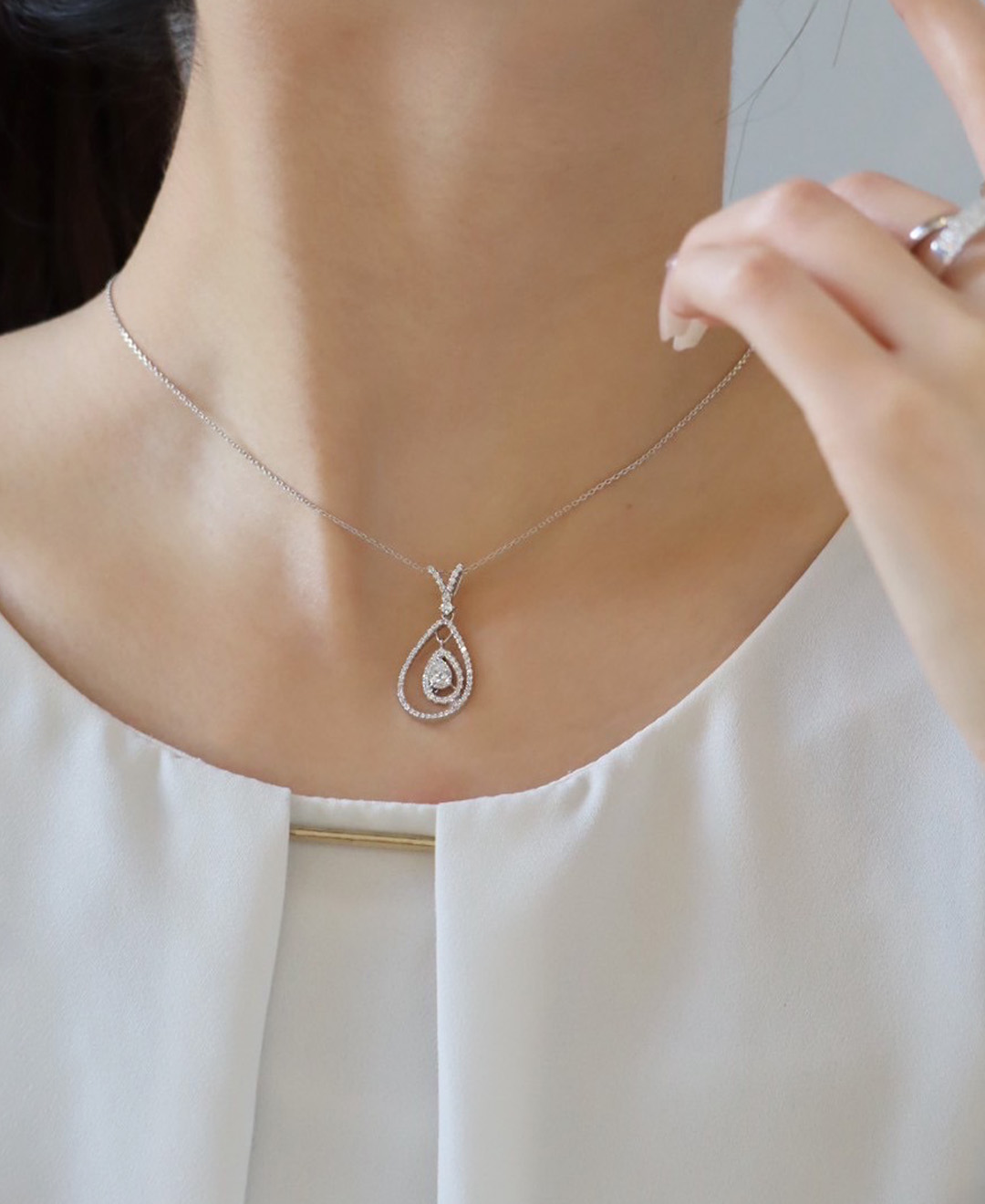 ゆらめくしずく型のダイヤモンドが首元で輝きます。