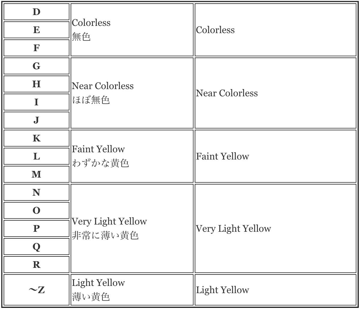 ダイヤモンドは無色のものを最高評価Dとし、黄色味のあるZまでの23段階に評価されます。