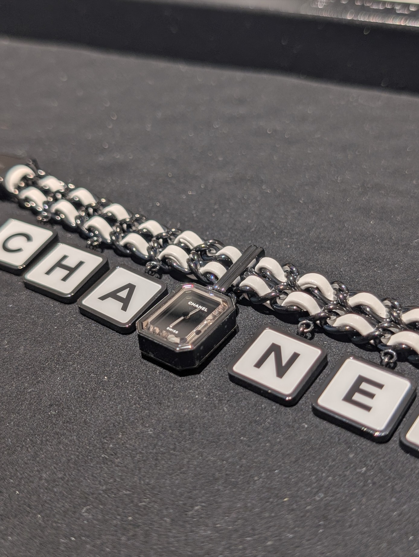 “CHANEL”の文字がチャームとしてあしらわれたデザイン。