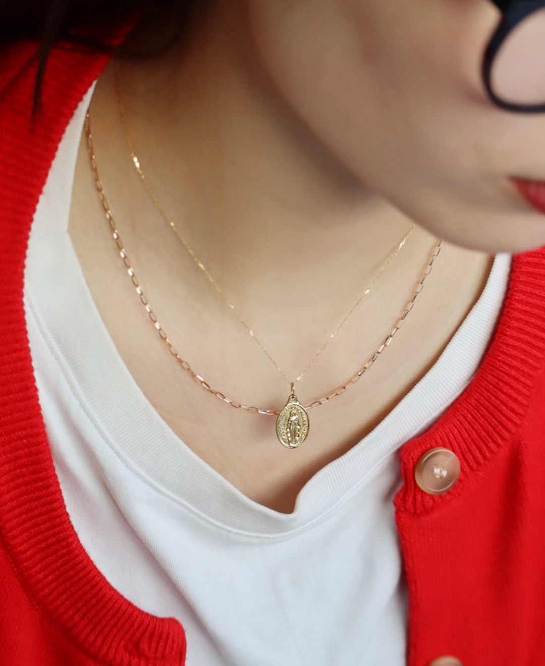 サークルの中の輝きは、なんと地金のカットのみで出しているネックレスです